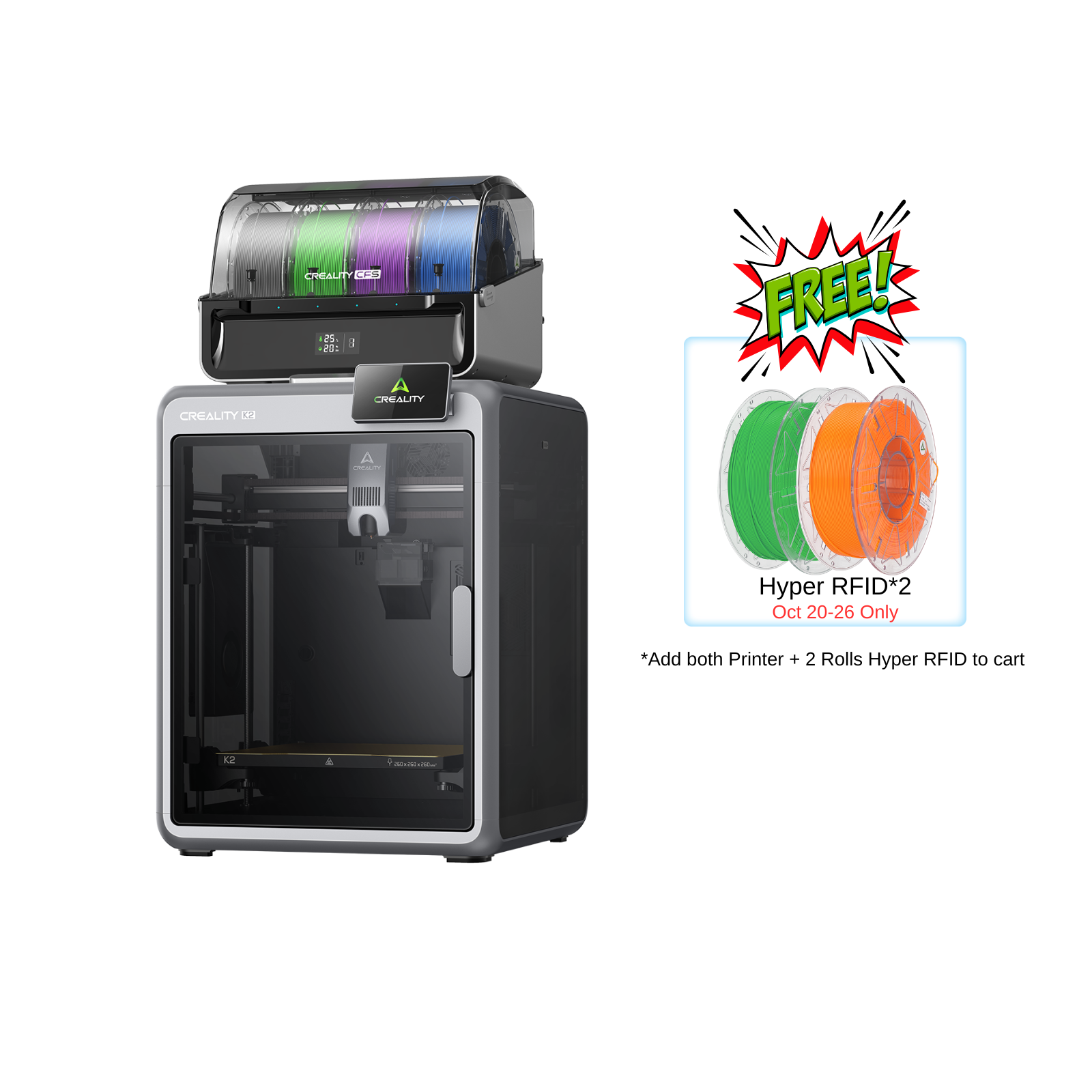 🍬Halloween Treat!📅 Oct 20-26 Only: Buy a K2 PRO/K2(Single or Combo Version), Get 2 FREE Filaments!✅ To redeem: Add both printer +... Read more