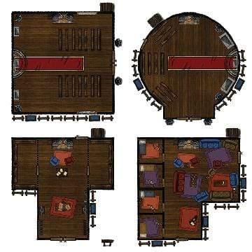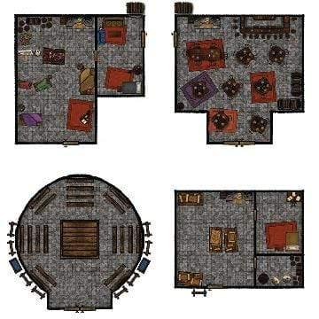 Want to customize your town in addition to this pack? Not a problem. You can use the unfurnished floor map templates to create your own unique stone, wood, or dirt buildings.